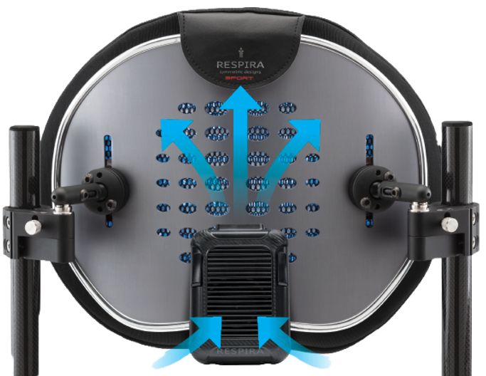 The lightweight, ultra-cool alloy backrest with advanced ventilation and 360-degree adjustability for ultimate comfort and support.